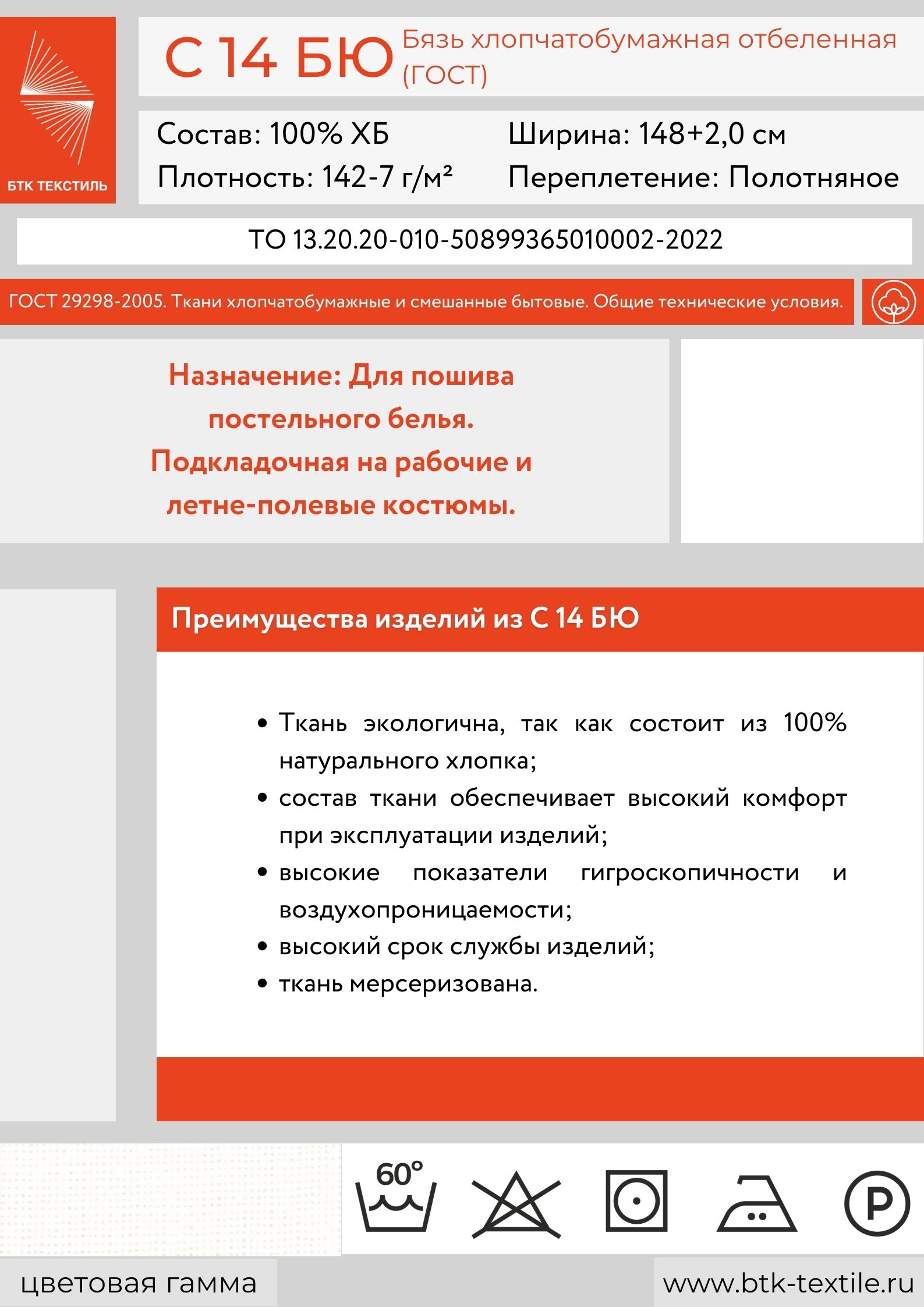 Бязь хлопчатобумажная отбеленная ГОСТ С 14 БЮ