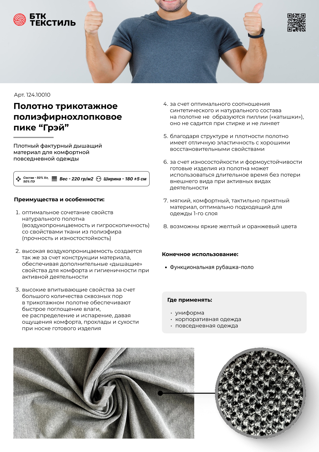 Полотно трикотажное полиэфирнохлопковое пике ГРЭЙ